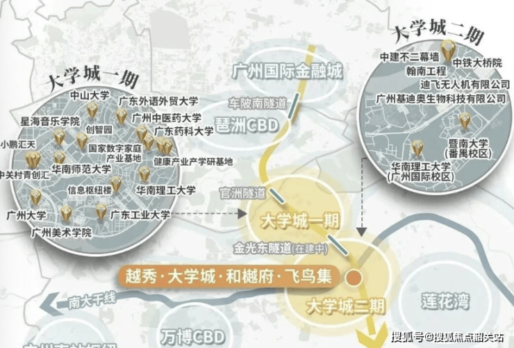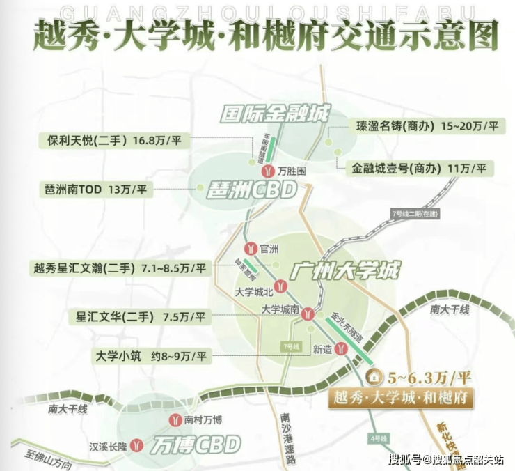 交通配套的全面落地成为板块价值爆发的核心引擎,金光东隧道正式通车后,大学城一期与二期实现 5 分钟无缝衔接,南大干线全线贯通,串联广州南站、万博 CBD、广汽基地等核心功能区,4 号线新造站地铁通勤效率大幅提升,彻底打破板块交通壁垒,实现与琶洲、金融城、万博三大核心商圈的快速联通,板块价值得到市场重新定价。