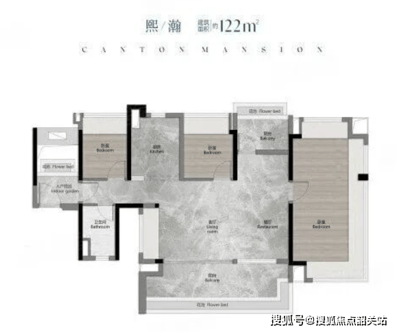 项目规划了4栋住宅,采用蝶式布局,总户数约1040户,梯户比为4梯5户,总层高达到57层。这种高层设计在保证容积率(7.5)的同时,最大限度地释放了地面空间用于景观打造。产品主打建面约88㎡至120㎡的三至四房户型,精准定位“刚改”群体。