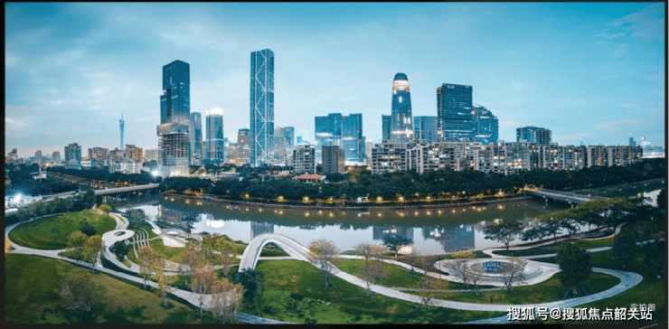 越秀利用双涌环绕的优势,引水入园、绿脉生长,在琶洲南TOD内部做出来一个对标曼哈顿高线公园的超稀缺滨水生态核心。