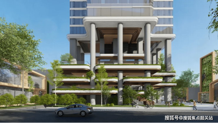 3、除了观樾和琶洲南TOD,越秀还做出了一个架高30米的垂直花园住宅——滨江樾。