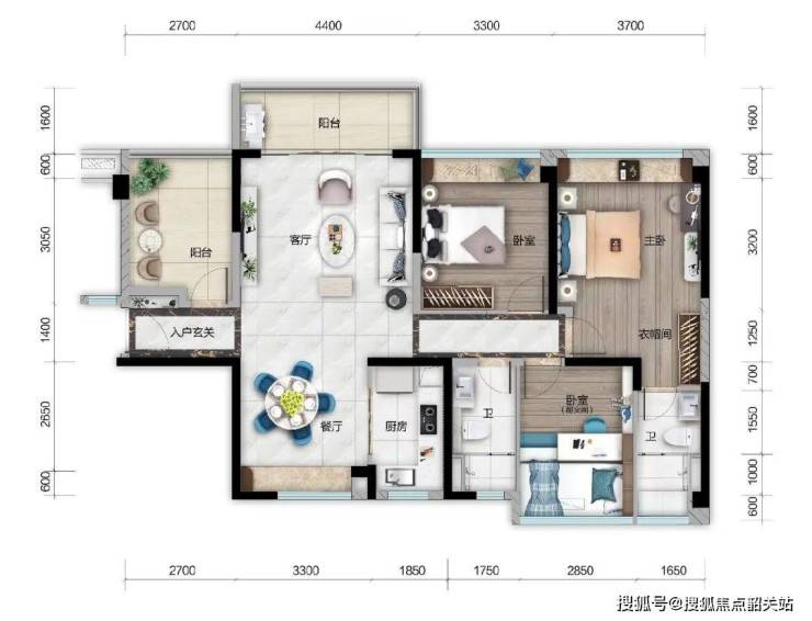 约99㎡ 3开间朝南阳光房:南向望水道,视野开阔,3开间朝南,阳光入室,动静分区,私密性高。