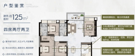 项目占地约33万平方米,建筑面积约84万平方米,容积率3.3,绿化率达35%,二期共8栋楼,规划户数约1072户,为业主倾心打造中央独栋的高品质住宅。从户型到景观,每一处细节都经过精心设计,力求为住户营造优雅舒适的居住环境。前后双园景入户,让自然绿意尽收眼底;中央独栋设计,确保了卓越的私密性;精心打造的105-125㎡三至四房户型,通风采光出众。可以说,这里不仅是一个现代化的高端住区,更是一处理想的人居典范。