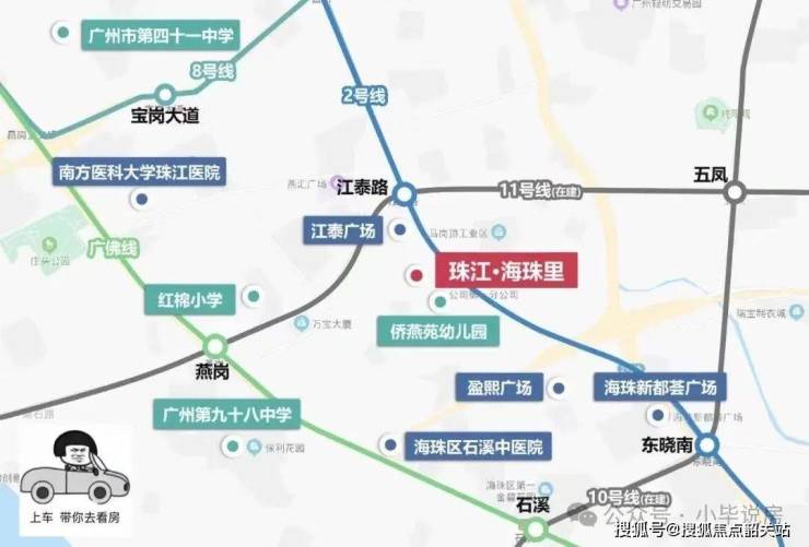 项目**最近的地铁站是2号线江泰路站**,约1.3公里,步行可达。周边已开通**2号线、8号线、广佛线**,加上在建的**10号线、11号线**,未来出行选择更加丰富。