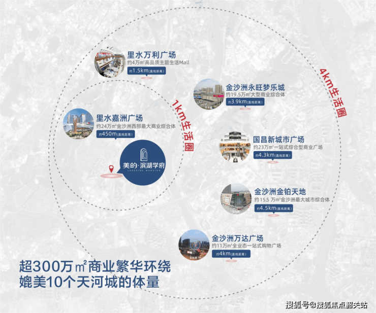 3km范围内有永旺梦乐城、金铂天地、金沙洲万达广场、万益广场、国昌新城市广场等等….即可享受超过10个天河城的商业体量。