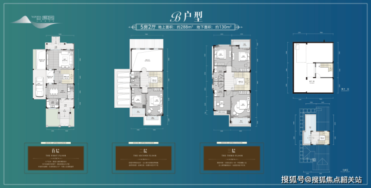 B户型:总建面418㎡(地上288㎡,地下130㎡)