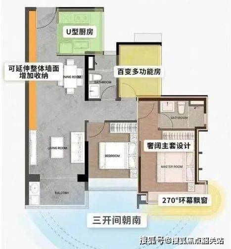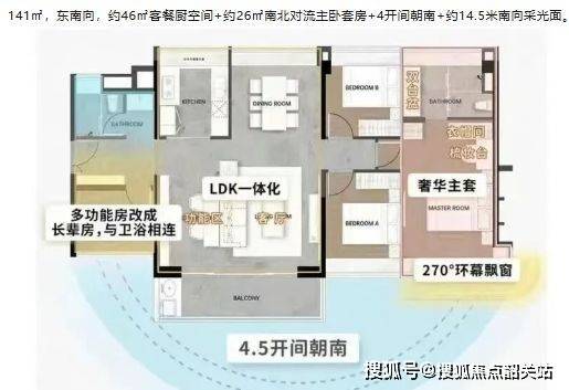 项目户型涵盖80-140㎡三至四房,动静分区合理,主卧、次卧及生活区布局科学。部分户型南北通透,双阳台设计及270°景观主卧套房,提升采光、通风及视野。全南向蝶形布局确保每户朝向南方,兼顾江景及河涌景观,实现景观最大化利用。