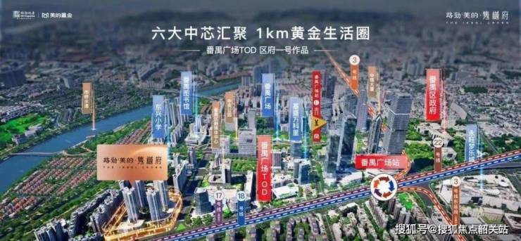 * **地铁上盖综合体地标,畅享湾区1小时生活圈**:路劲美的·隽樾府坐拥五轨交汇的交通便利,包括地铁3号线、18号线、22号线以及在建中的17号线和3号线东延线。仅需一站即可到达万博,两站直达珠江新城,便捷的交通网络让业主轻松畅达湾区各地。(400-078-0012售楼处已认证)同时,周边约17万㎡永旺梦乐城、基盛万科里、奥园广场等大型商业中心环伺,提供了丰富的购物、餐饮和娱乐选择。