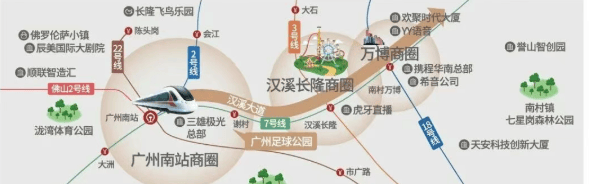 广州足球公园地处湾区黄金走廊,区位优势无可复制。项目距广州南站仅约5分钟车程,作为亚太TOD综合交通枢纽,广州南站汇聚14条轨道交通线路,1小时畅达粤港澳大湾区主要城市,真正实现“湾区都会圈”的高效互联。