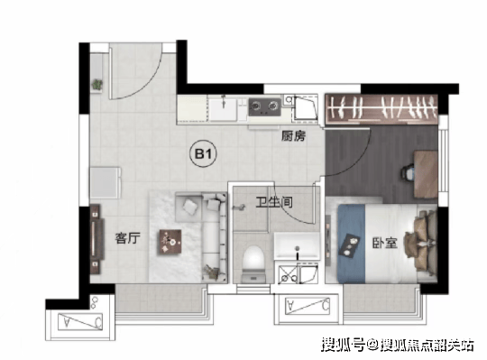 轻奢平层公寓 | 44㎡一室一厅一卫