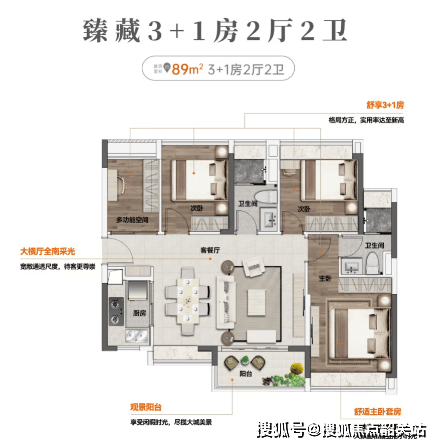 从69㎡至110㎡的多种户型设计,满足不同家庭的需求。特别值得一提的是,其户型实用率高达93%,为购房者提供了更多的使用空间。