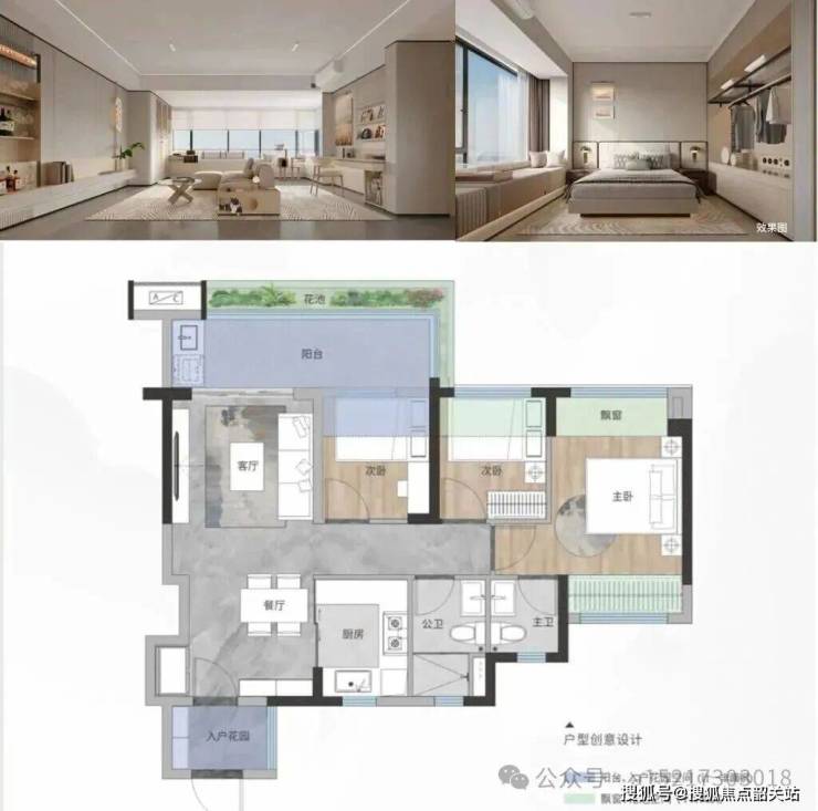 77 平方米三房:紧凑实用,布局合理,动静分区明确,独立入户花园提升私密性,宽景阳台增加采光通风,满足三口之家居住需求,超 100% 实用率让空间更宽敞,性价比极高。