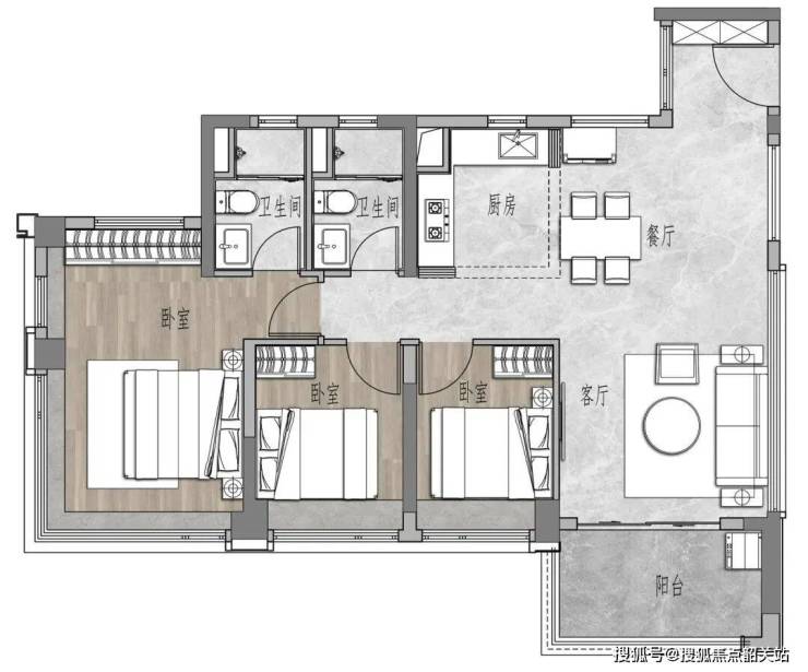 关于户型设计,我重点查看了建面约85平方米的三房两卫户型,这是该项目的主力产品之一。进入样板间,首先感受到的是空间划分的清晰度,玄关、客厅、餐厅呈一线排布,动线流畅且无明显浪费。三个卧室的布局兼顾了隐私与采光,主卧配备了独立卫生间,提升了居住的舒适度。值得一提的是,在约85平方米的面积段内做到三房两卫,体现了设计团队对空间利用率的极致挖掘,每一个平方米都被赋予了明确的功能属性。相比之下,建面约69平方米的三房一卫户型则更适合首次置业的年轻群体,虽然面积紧凑,但基本的生活功能一应俱全,有效控制了总价门槛。而对于改善型需求,建面约108平方米和113平方米的四房两卫户型提供了更宽敞的家庭活动空间,多出的房间可以作为书房、儿童房或老人房,灵活适应家庭结构的变化。这些户型图上的尺寸标注,在实际测量中均能得到验证,没有虚大的公摊误导,展现了务实的产品态度。