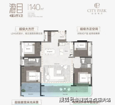 户型设计是西派粤府的另一大亮点,96%-100% 的超高使用率在当前市场中极为罕见,意味着购房者花同样的钱能获得更大的实际居住空间。主力户型为 120-140㎡四房,无论是三口之家还是三代同堂,都能轻松满足居住需求。户型整体方正通透,动线设计合理,没有多余的浪费空间。为了最大化利用江景资源,设计师特意打造了超宽景观阳台,部分户型阳台宽度足以容纳休闲沙发与绿植,成为欣赏江景、晾晒衣物、品茶观景的多功能空间。L 型主卧转角飘窗更是点睛之笔,躺在床上就能欣赏到连绵的江景,清晨被江风唤醒,夜晚伴着江声入眠,让江景与生活深度融合。
