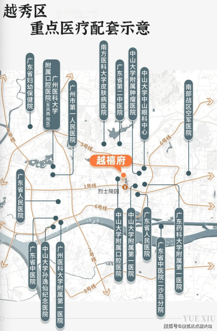 越秀区内有14家知名三甲医院(车程10分钟内),占全市数量的约40%。步行5分钟范围内汇聚4大甲级医院:医科大学附属第一医院、中山大学附属第一医院、中山眼科医院、肿瘤医院。顶级的医疗资源,确保家人健康无忧。