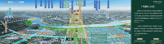 商业配套完善,约 10 - 15 分钟车程内可直达大学城商圈、思科智慧城商圈、万博商圈,购物、休闲、美食、娱乐等商业生活配套一应俱全。医疗保障完备,周边分布着广东省妇幼保健院、广东省中医院大学城医院、番禺区第二医院、番禺区第六人民医院、新造区医院等医疗机构,为居民健康保驾护航。休闲资源丰富,坐拥约 90 万㎡中央公园,面积相当于 1.6 个花城广场或 126 个足球场,周边还有岭南印象园、莲花山旅游区、余荫山房、长隆旅游度假区、瀛洲生态公园等风景区。此外,国际创新城板块内生物岛汇聚 500 多家生物医药企业,智慧谷招商企业超 70 家,包括多家世界 500 强企业,区域发展潜力巨大。