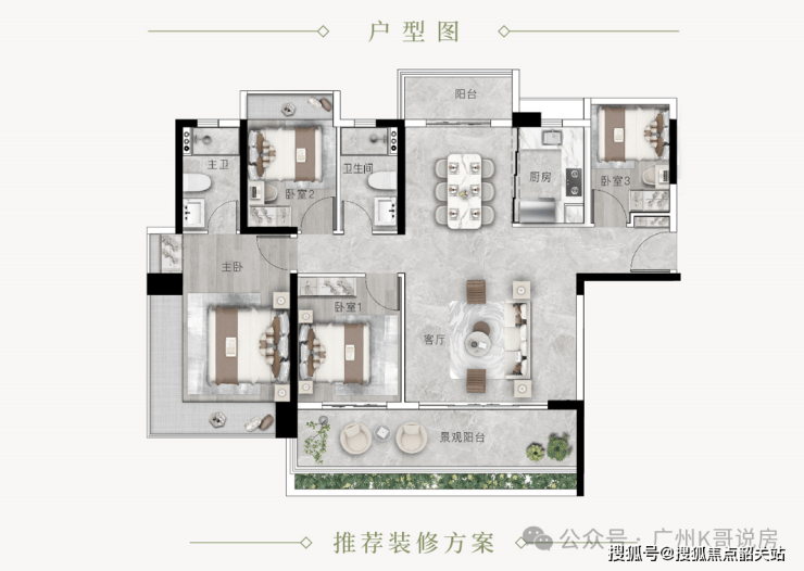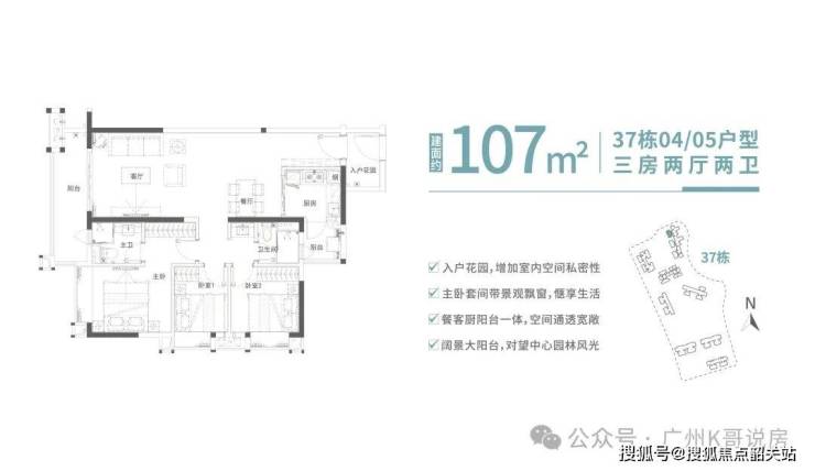 此次广地花园·观灏,面积段80-107悦景三房,多面采景,三面望水,通透采光,充分利用户型的每一寸肌理,以有限的生活空间焕发更多生活灵感,打造全方位人性化居所。