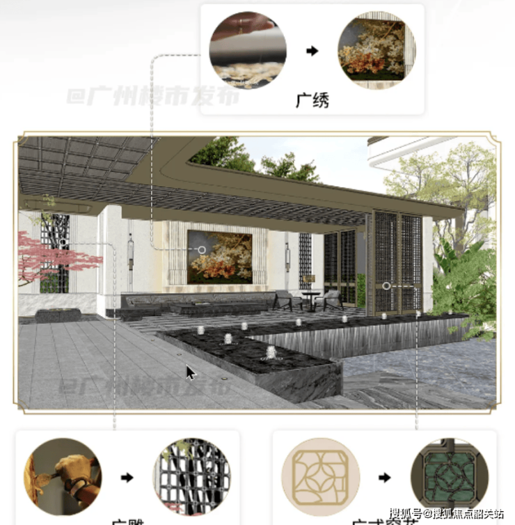 越秀·桂悦东晓作为越秀地产“广府系”4.0产品,建筑外观融入了大量高阶美学元素。在楼盘园林、架空层等公区位置,采用了千年广绣、广府花窗等传统岭南文化设计,极具广府韵味。广绣的精美图案、广府花窗的独特造型,让建筑充满艺术气息,既展现了岭南文化的博大精深,又符合当下人们对传统文化回归的审美潮流。此外,建筑布局由北至南“一字型”排开,户型全是南向设计,不仅保证了良好的采光和通风,还使得建筑整体外观整齐有序,线条流畅。从整体到细节,都体现了高阶美学与实用性的完美结合,让建筑不仅是居住空间,更是一件艺术品,为城市增添了一道亮丽风景线,也为业主带来了高品质的居住体验和视觉享受。
