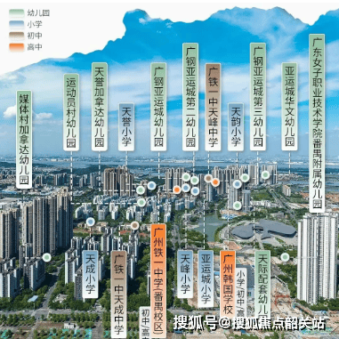 教育资源是亚运城的一大亮点。整个板块内共有 19 所学校,涵盖 9 所幼儿园、5 所小学、3 所初中、1 所高中以及 1 所韩国学校。其中 4 所省一级广铁一中全部开学,三所铁一系初中只对口亚运城小区生源,人户一致优先。广铁一中教学质量卓越,重本率连年保持高位。天际组团内规划了幼儿园,小学大概率读亚运城小学,初中大概率分配到铁一中学,为孩子提供连贯优质的教育资源,升学路径清晰。