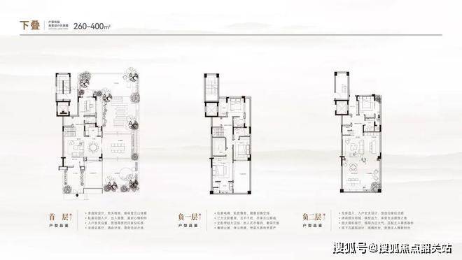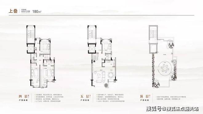 白云堡・三期的户型设计独具匠心。“观善居” 的 180㎡云端平层,采用创新 LDKB 一体化格局,270° 环幕瞰山视野,奢阔主卧套间配置以及双洄游动线设计,空间开阔且功能多样,充分利用每一寸空间,提升居住舒适度。180 - 400㎡的叠院臻品,上叠有星空露台和云端花园,三层立体生活空间;下叠有私属庭院和地下多功能厅,双首层立体院落,既保证了居住的私密性,又实现了空间的高效利用。观善居180㎡上叠创意布局示意图悦融居183-263㎡上叠创意布局示意图
