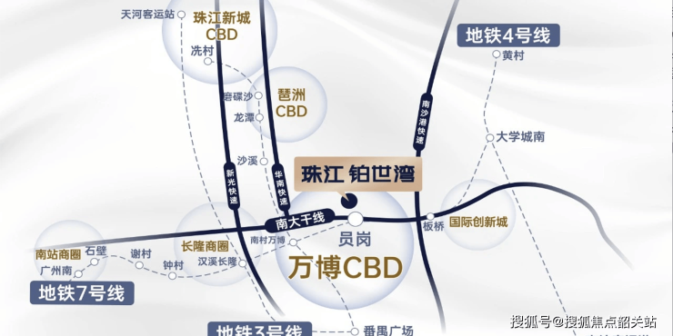 从地理位置来看,项目坐落于番禺核心区域,地处广府正脉,对望珠江新城CBD,与广州塔隔江呼应,不仅是城市繁华的延伸,更承载着岭南商贸文明的深厚底蕴。项目地处万博CBD南延线,依托万博CBD的扩容升级与发展红利,以及新基旧改、国际双创科技城两大城市更新项目的推动,区位价值持续攀升,成为广州南部人居价值的核心洼地。同时,项目依托全维度立体交通路网,快速接驳全城,既远离城市喧嚣,又能便捷享受城市核心配套,实现“繁华与静谧共生”的理想居住状态。