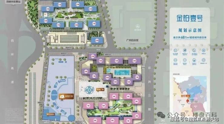 金铂壹号项目位于广佛交界的佛山市南海区建设大道与环洲三路交汇处,广州地铁6号线沙贝站、河沙站附近;紧邻广州白云、越秀、荔湾三大核芯区,真正一路到白云,一桥到荔湾!金沙洲商圈C位,傲立于金沙洲潮流商圈,是人流/物流/财富流的汇聚之地!