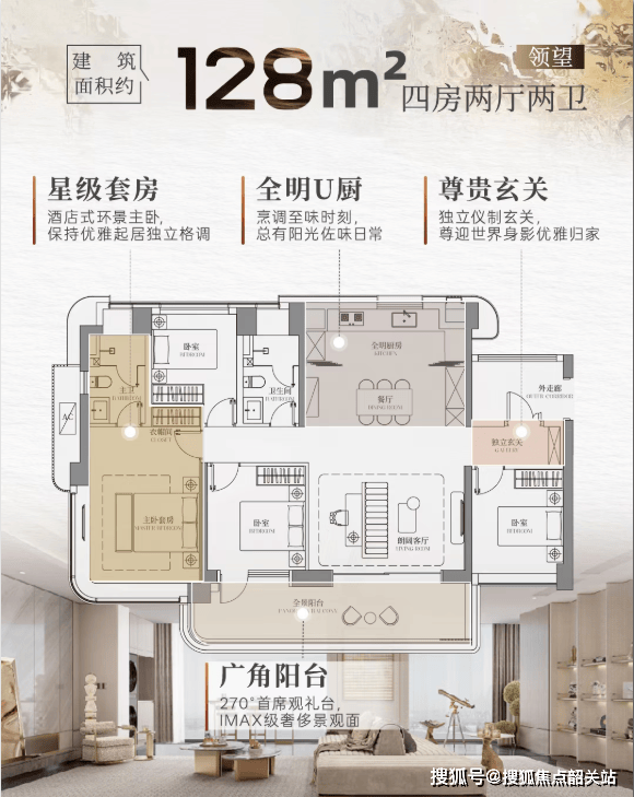建面约128-238㎡的主力户型,不仅拥有超大观景面宽,更以270°全景落地窗设计,将小蛮腰、珠江夜色、城市灯火尽收眼底。站在家中,仿佛置身巨幕影院,鎏金江面与璀璨天际线交织成流动的艺术品,日常即度假。