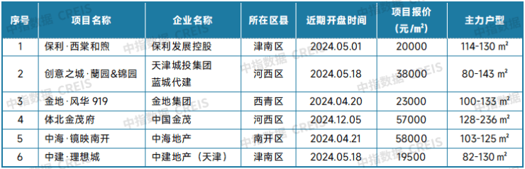表:天津新房典型项目数据来源:中指数据CREIS(点击查看)市场监测:https://www.cih-index.com
