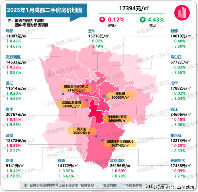 图:2025年1月成都各市辖区二手住宅挂牌均价及环同比数据来源:中指数据CREIS(点击查看)市场监测:https://www.cih-index.com