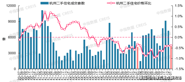 图:2020年7月至2025年1月杭州二手住宅成交套数及二手住宅价格环比走势数据来源:中指数据CREIS(点击查看)市场监测:https://www.cih-index.com