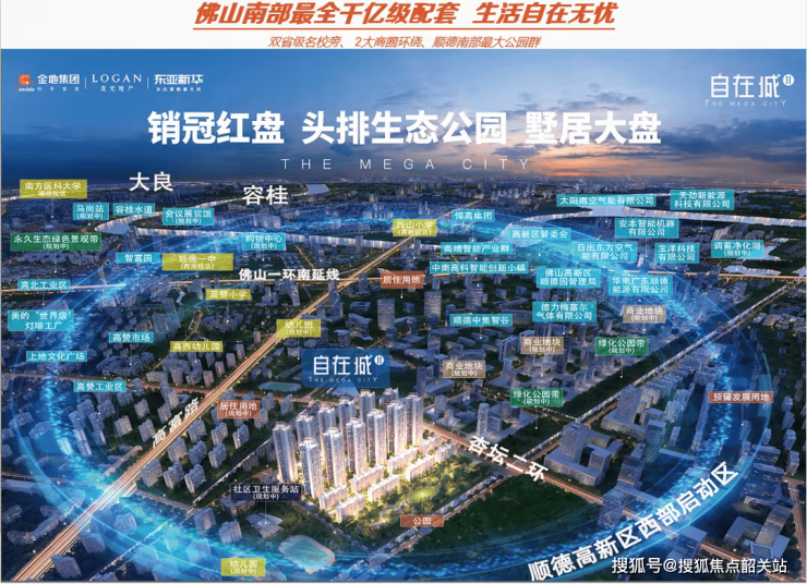 顺德自在城是由金地联手龙光、东亚新华三大品牌联合开发,集三大品牌的优势,全方位倾力打造的新一代28万㎡的梦想生活大城。