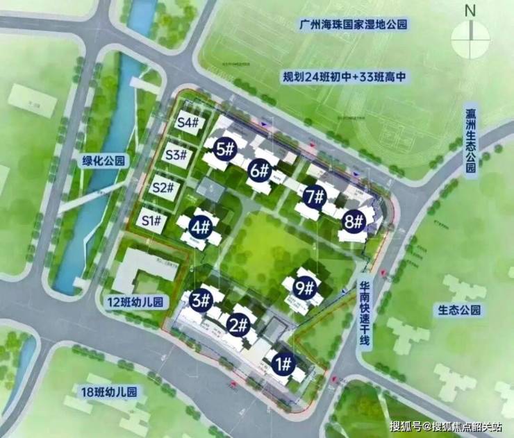 湿地资源:项目最大的生态优势在于紧邻约1100万平方米的海珠国家湿地公园。部分高楼层单位更可远眺湿地景观,实现了“城央隐居”的居住梦想。