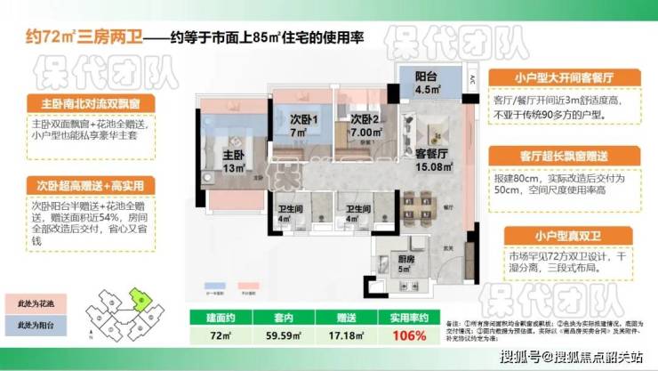 💯【100万起 72㎡三房两卫 106%使用率!】