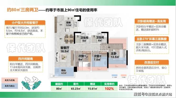 💯【流量王 80㎡三房两卫 102%使用率! 】