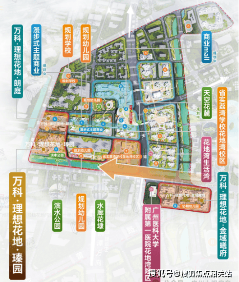 臻园位于广州市荔湾区花地湾商务组团内,紧邻白鹅潭和聚龙湾双太古区域。作为荔湾区重点发展的核心地段之一,这里被规划为广州最具前景和发展潜力的地方之一。2023年的《荔湾国土空间总体规划》特别提到了该地区的战略重要性,强调其在打造“产、商、住”一体化新城市中心中的关键作用。