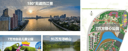 繁华与自然兼得:项目自带4.5万㎡商业综合体,周围还有万达广场、金铂天地等多个大型商圈,提供了丰富的购物娱乐选择。同时,背靠91万㎡浔峰山,连同东珠江滨江水道、金沙洲滨江公园等,构成了“一江一山三园”的景观休闲体系。