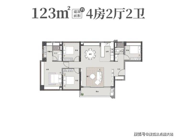 一百二十三平方米的四房两卫户型,专为进阶家庭打造。它采用了 LDKB(客餐厨阳)一体化布局,打破了传统空间的界限,让家庭成员之间的互动更加频繁,情感交流更加顺畅。南北对流的设计,保证了室内空气的流通,四季清新。四开间朝南的格局,再次彰显了其对采光的极致追求。宽敞的空间布局,让每个房间都显得大气磅礴,无论是二胎家庭还是三代同堂,都能在此找到属于自己的舒适角落。