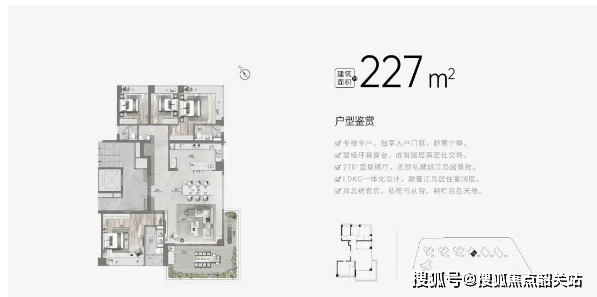 以建面约227㎡户型为例,亮点尤为突出: