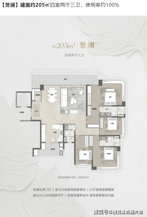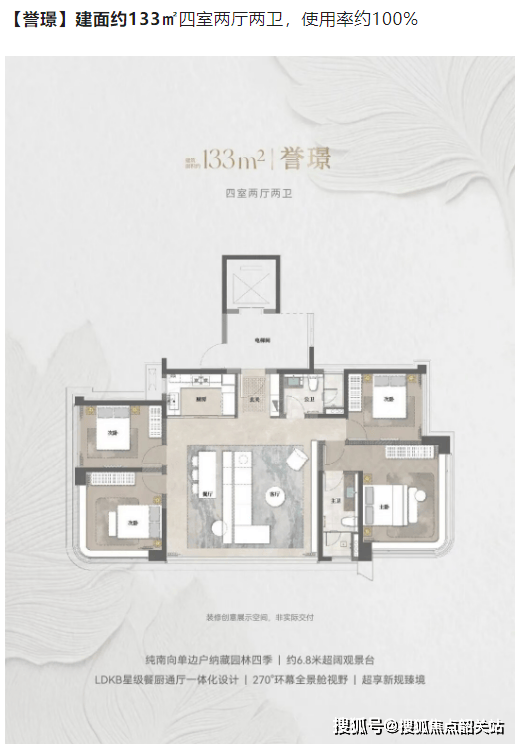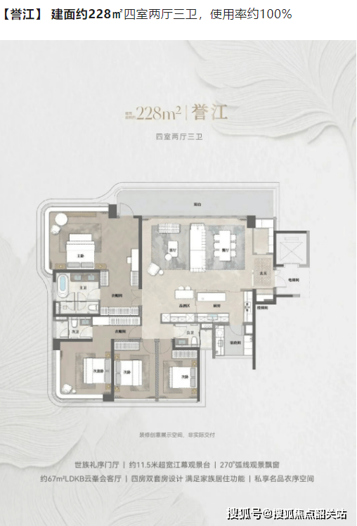 能建天誉府提供多种户型选择,包括建面约133-228平方米的四房单位,使用率接近或达到100%。部分户型如建面约219平方米的户型,拥有16米L型阳台,实现了270°环幕观江效果,最大化利用江景资源。