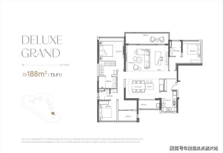 190方户型,四房两厅三卫双套房,T2组合、7米大阳台、9米阔卓厅堂、近55方餐厅,诠释了功能与奢适完美相融