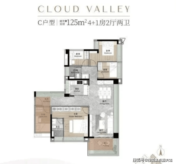 天悦云山府户型设计兼顾舒适性、私密性与景观体验。C2栋头排2T5户设计,小高层与高层住宅户型面积约90至156平方米,三至五房布局多样化,满足不同家庭结构需求。户型南向采光,通风效果极佳,客厅与阳台连通设计,实现室内自然采光最大化。主卧配套套房设计和多功能衣帽间,提供宽敞私密空间,次卧可灵活兼顾多种功能。