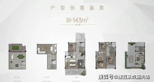 楼栋结构方面,整体规划4栋9—17层小高层住宅与18栋4—6层叠院式洋房产品。产品户型均为约143平方米的大平层或叠墅体系,其中小高层采用两梯两户叠院采用专梯专户形式,具备较强的私密性与空间独立性。
