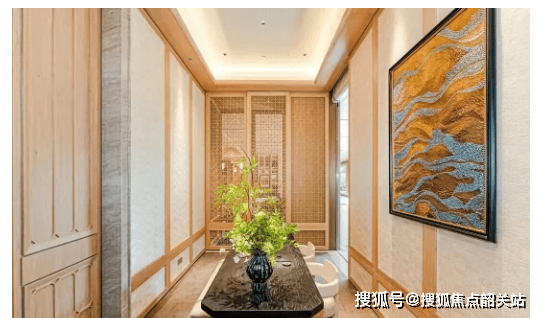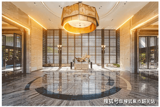 首先,项目打造了极具仪式感的三进阶归家动线,让业主每一次回家都成为一种享受:一进阶为超70米宽的“山河如意门”,作为天河东最大的书卷式“主门楼”,前望山后邻水,气质儒雅,设计上融合了岭南老书院与名园的韵味,寓意家族绵延、家业如意,庄重又不失吉祥之意;二进阶为会所大堂“余荫山堂”,双层会所打造专属生活场域,涵盖会客厅、文昌阁、健身区、艺术门厅等多元功能,大堂设计传承岭南名园“余荫山房”的遗韵,祥云屏风、开枝散叶窗花纹样、云水交融吊灯、烫金手绘园林四季图等细节,处处彰显文化底蕴与吉祥寓意;三进阶为沉浸式下沉庭院“中天云庭”,以宋代《万壑松风图》为蓝本,用叠石、瀑布和松林打造山水画般的立体园林,水流潺潺,寓意福气汇聚,营造出静谧雅致的休闲氛围。