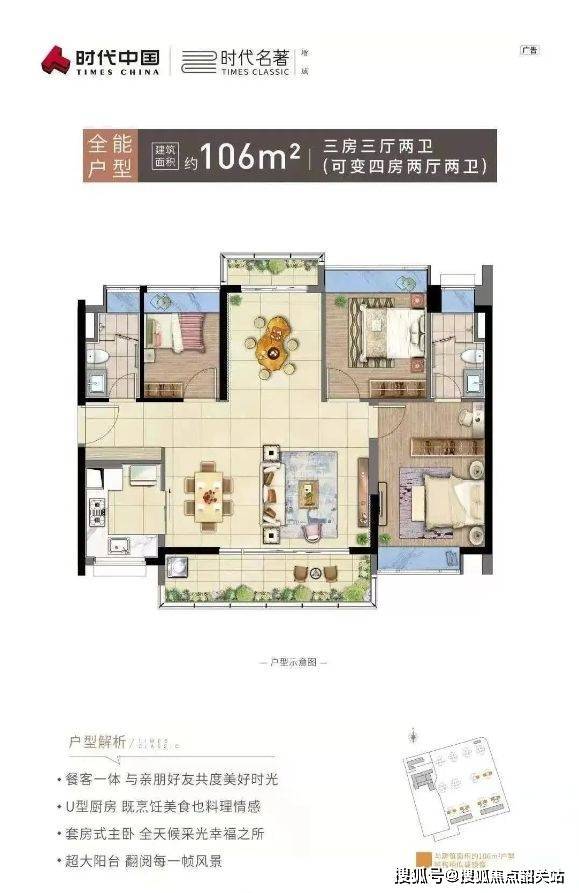 106㎡三房三厅两卫(可改四房两厅两卫)