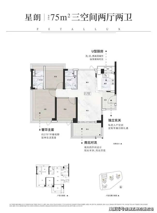 总价对比:75㎡三房220万起,比周边10年楼龄二手房便宜20%,使用率却高40%。
