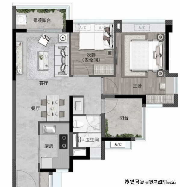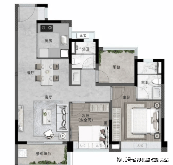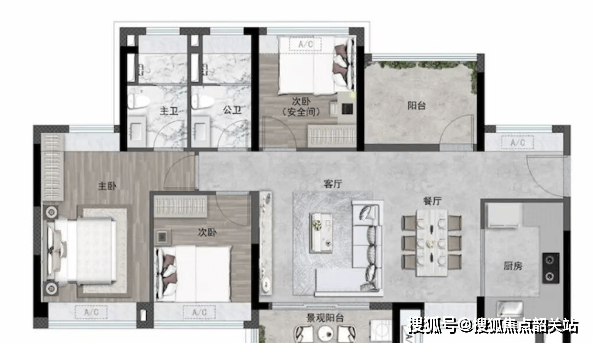 以89㎡的2 + 1房为例,该户型四开间朝南,阳光可以充分洒进室内,让整个空间明亮通透。约6米宽景阳台,视野开阔,可欣赏到社区园林的美景,让您在家中就能感受到大自然的气息。主卧带有独立卫生间和飘窗,增加了居住的私密性和舒适度。