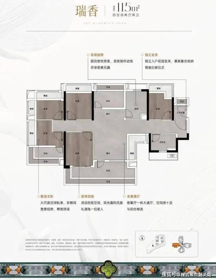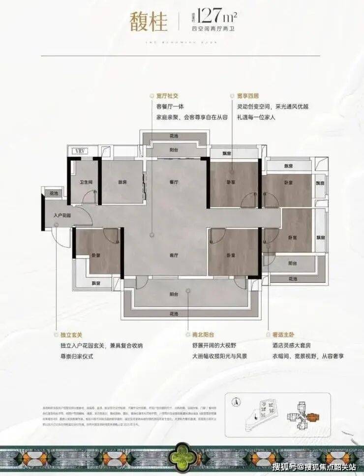主力产品集中在85到128平方米之间,全部朝南,且普遍做到三至四房格局。我重点看了102㎡和127㎡两个样板间。102㎡是经典的“飞机户型”,LDKB一体化设计让公共区域显得格外开阔——客厅连着6米宽阳台,厨房与餐厅之间用玻璃推拉门隔开,既通透又防油烟。主卧配了步入式衣帽间和270°转角飘窗,早上拉开窗帘就能看到河岸绿意。而127㎡户型更值得细说:南北对流、双阳台配置(一个观景、一个家政),三个卧室都带飘窗,实用率据说超过90%。特别注意到,每个户型的玄关都预留了嵌入式收纳柜位,未来放鞋、挂外套、囤日用品都很顺手,这种“提前想好你生活动线”的设计,在当下新房里并不多见。