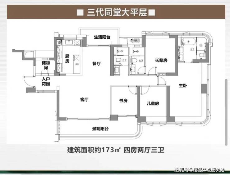 首开户型:建筑面积约128㎡ -173㎡