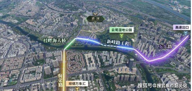 市政公路配套逐步完善,桂畔海大桥预计 2025 年 12 月竣工通车,届时将使东区与澐璟、云鹭板块紧密相连。新峰路(下沉隧道)同样预计 2025 年 12 月通车,连接多条重要道路且下穿湿地公园,减少对生态影响。此外,项目临近佛山地铁 3 号线驹荣北路站 A 出口,顺德一中站 A 出口也在直线距离 1.5 公里处,交通便捷。顺德澐璟凭借这些优势,成为极具吸引力的居住选择。