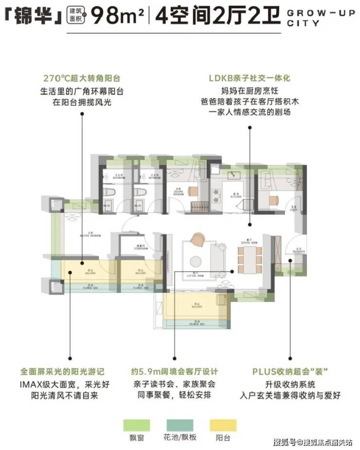 建面约98㎡4空间2厅2卫,全家人都住的很舒服
