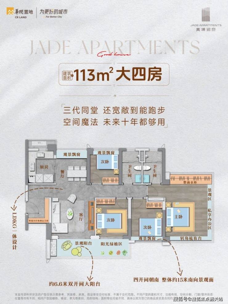 在空间功能上,项目引入LDKG一体化布局(客厅、餐厅、厨房、阳台融合),打破传统隔断,打造无阻碍的家庭互动场域。同时,通过全屋可变空间设计,满足家庭不同生命周期的需求:88㎡户型书房可与客厅打通,形成大方厅;次卧灵活分合,适配二孩或老人同住;98㎡户型预留X空间,可随心改造为电竞房、茶室等功能区;113㎡四房则巧妙利用飘窗,打造超大衣帽间与全明梳妆区,细节之处尽显人性化考量。